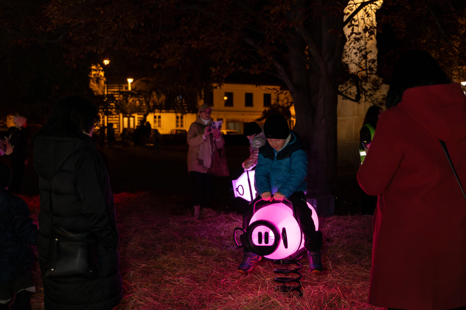 Recycled barrels have been transformed into cheerful, glowing piglets on springs that change colour when touched. The interactive installation turns art into play – come, start a light magic and bring a smile to the faces of the youngest.